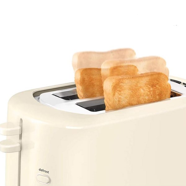 عملکرد گرم کردن مجدد در توستر بوش TAT7407 برای زمانی طراحی شده که نان از قبل برشته شده اما سرد شده است. در این حالت، دستگاه بدون افزایش بیش از حد دما، نان را مجددا گرم میکند و از تغییر رنگ یا سوختگی جلوگیری میشود. این قابلیت باعث میشود نان، لطافت و طعم اولیه خود را حفظ کند و برای سرو مجدد کاملا مناسب باشد. عملکرد گرمکردن مجدد به ویژه در وعدههای صبحانه شلوغ یا زمانی که چند نفر با فاصله زمانی از توستر استفاده میکنند، بسیار کاربردی است.