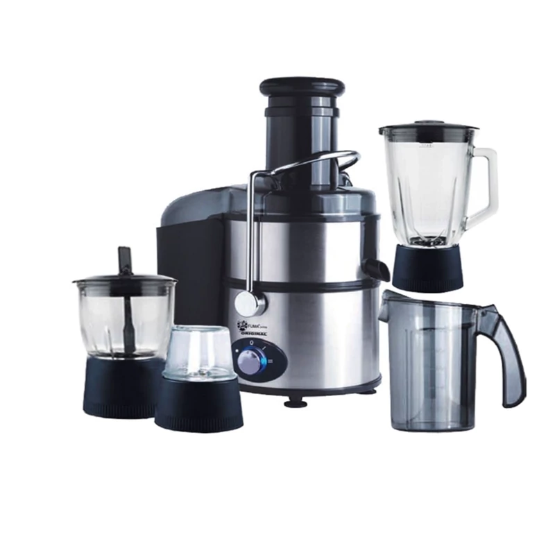 آبمیوه گیری فوما FU-804 تنها یک آبمیوه گیر ساده نیست، بلکه یک دستگاه چهار کاره است که علاوه بر آبمیوه گیری، به خرد کن، آسیاب و مخلوط کن نیز مجهز شده است. این ترکیب عملکردها باعث میشود بتوانید با یک دستگاه، بسیاری از کارهای روزمره در آشپزخانه را انجام دهید. خردکردن انواع سبزیجات، آسیاب خشکبار، تهیه اسموتی یا حتی سسهای خانگی همگی با این مدل امکانپذیر است.